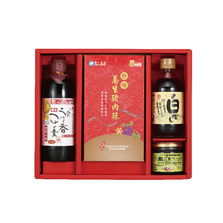 家庭萬用醬料禮盒(豬肉酥+香菇醬油+白高湯+黑芝麻醬)