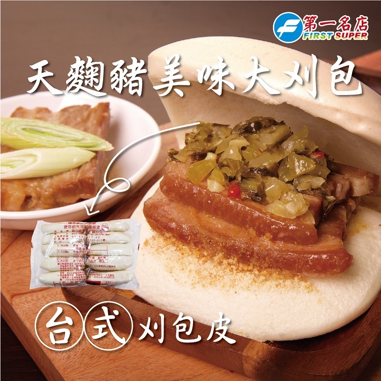 本組合含天麴豬烤方+刈包皮(10入)+炒酸菜+花生粉)