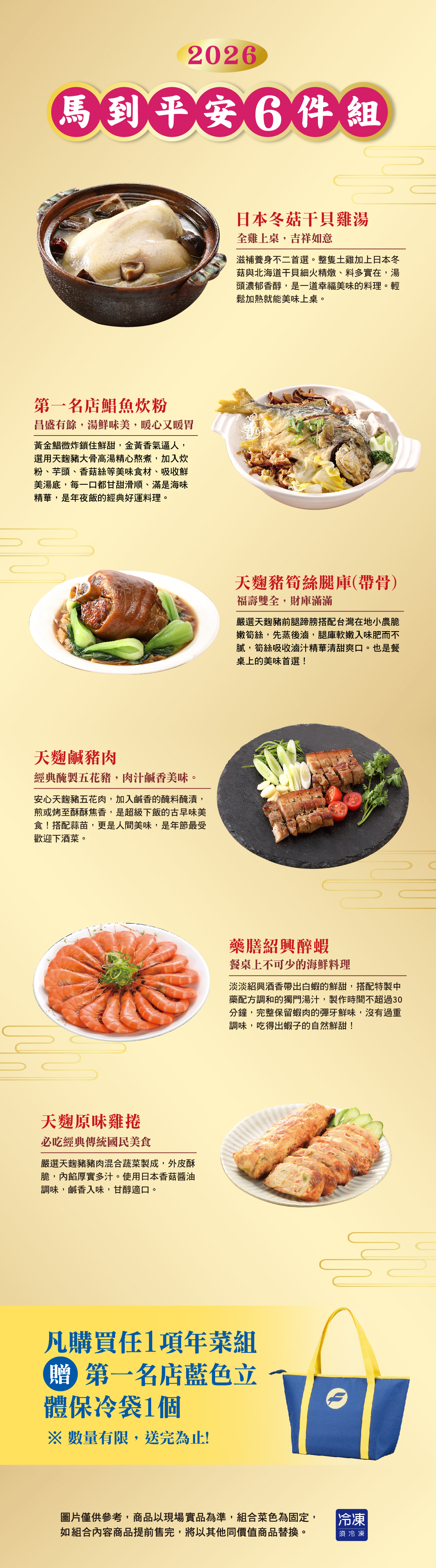 ※超值優惠年菜組合預購中※購買本特惠組 加碼送第一名店多功能保冷袋(藍款)