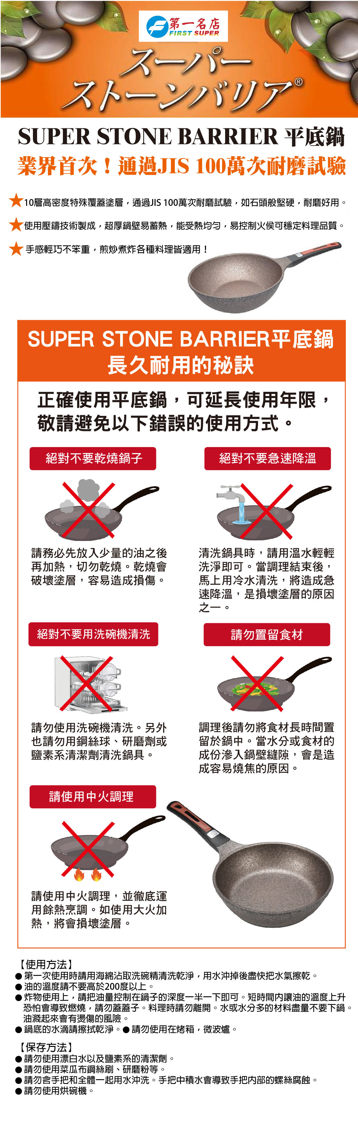 ▶10層高密度特殊覆蓋塗層,通過JIS 100萬次耐磨試驗,如石頭般堅硬,耐磨好用。