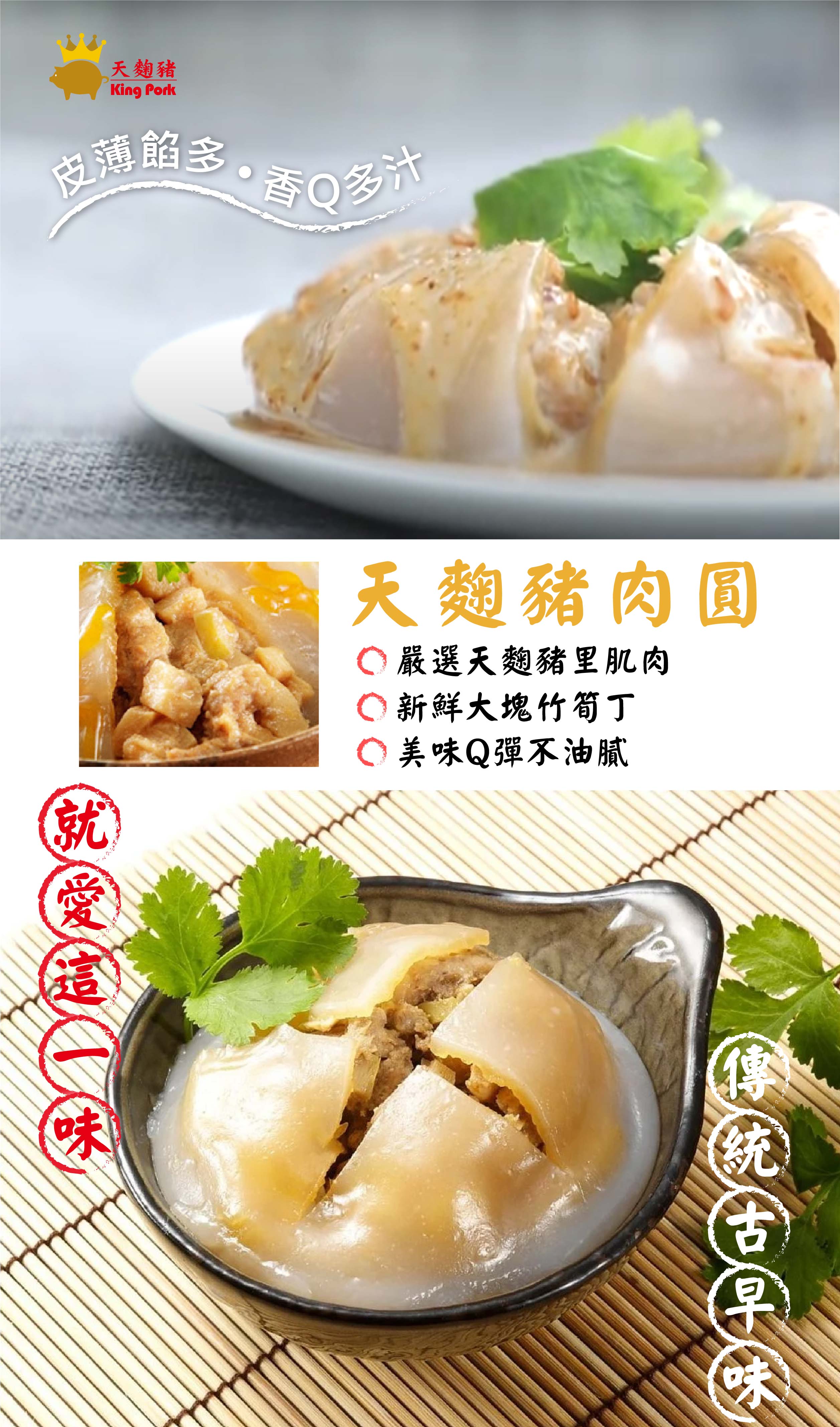 如純手工製作的香Q肉圓般美味,天麴豬里肌肉內餡香甜無腥味,皮薄餡多香Q多汁。