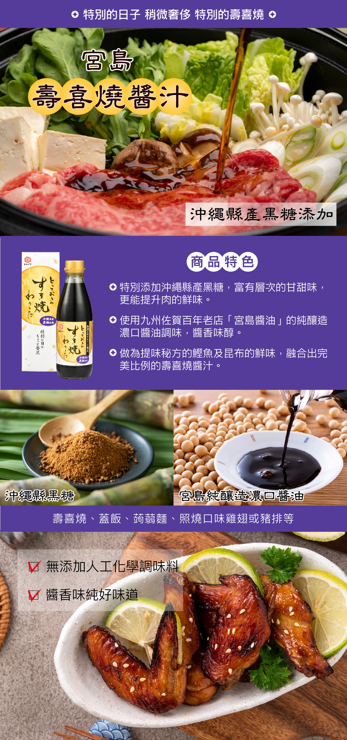 (2)使用九州佐賀,百年老店「宮島醬油」的純釀造濃口醬油調味,醬香味醇。