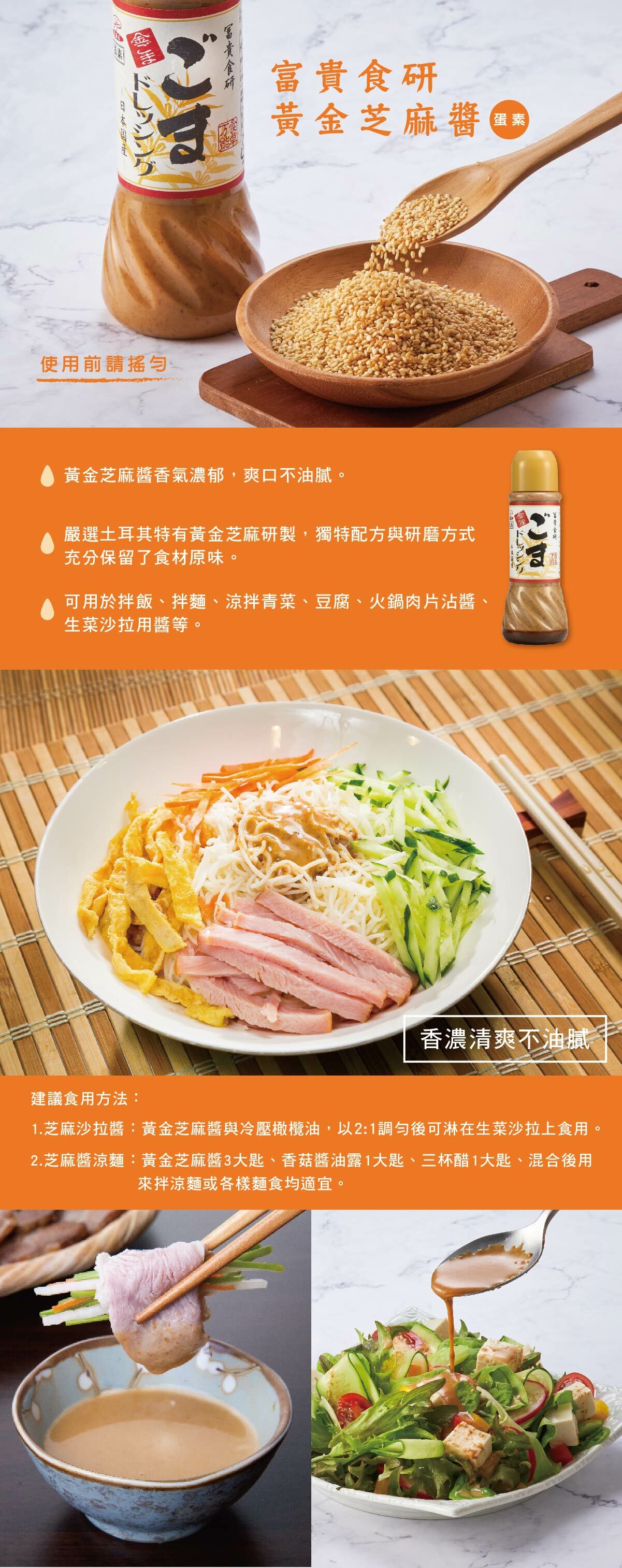 ●可用於拌飯、拌麵、涼拌青菜、涼拌豆腐、火鍋肉片沾醬、生菜沙拉用醬等。