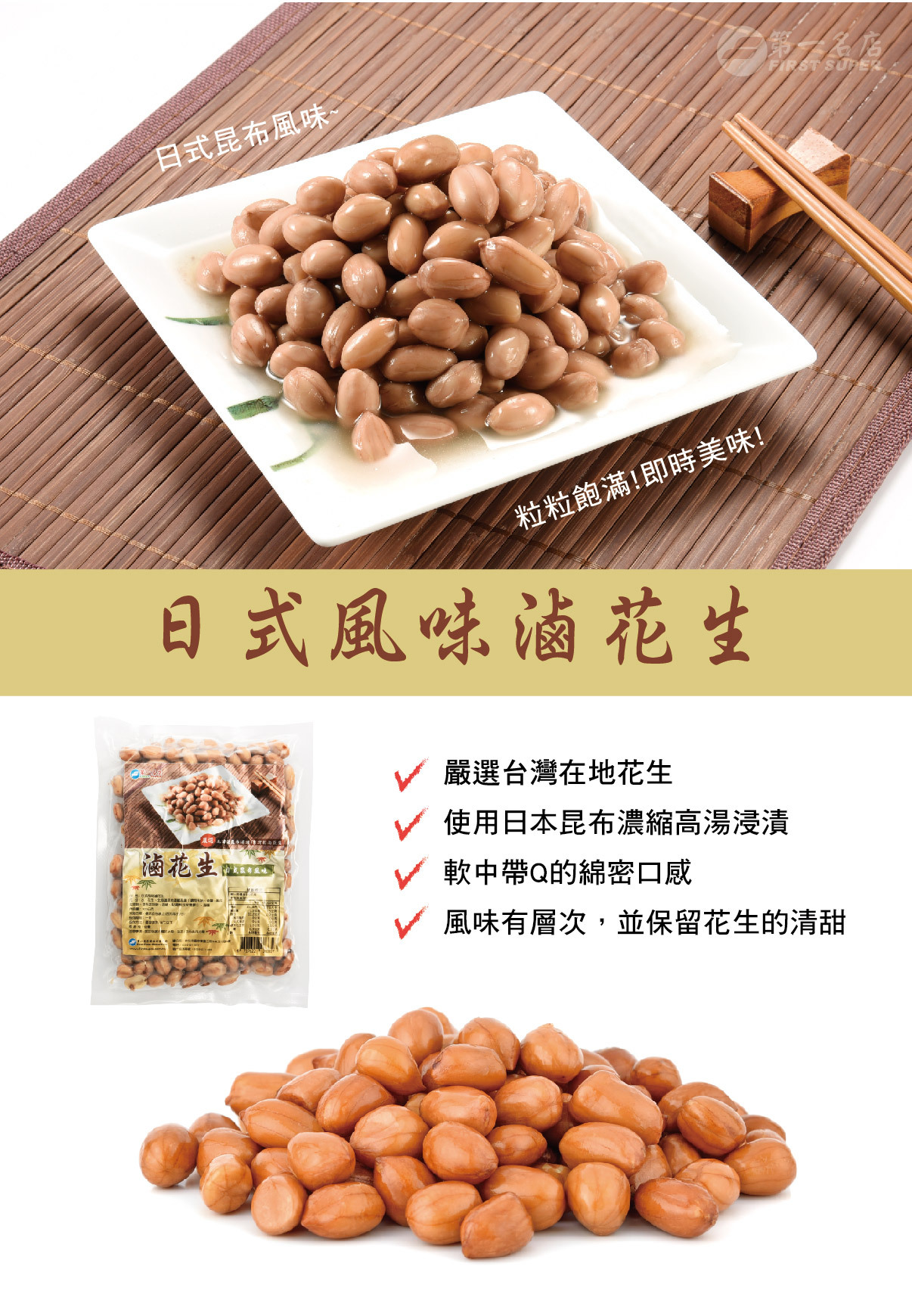 嚴選台灣在地栽種花生,加入日本昆布濃縮高湯,有層次的滷汁浸漬,產生出軟中帶Q的綿密口感, 保留花生清香的餘韻。