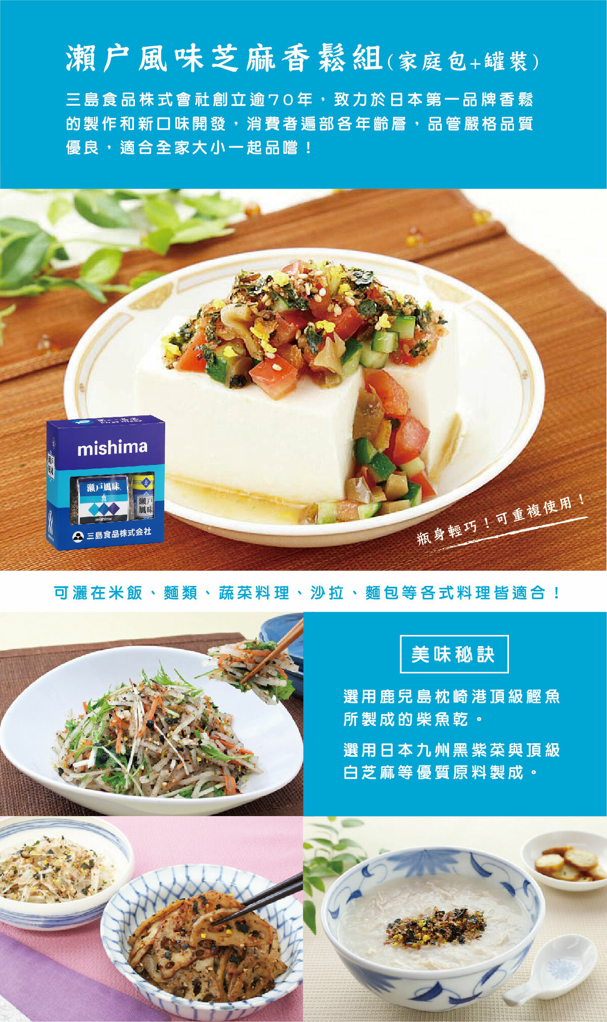 品 名 : 瀨戶風味芝麻香鬆組(家庭包+罐裝)