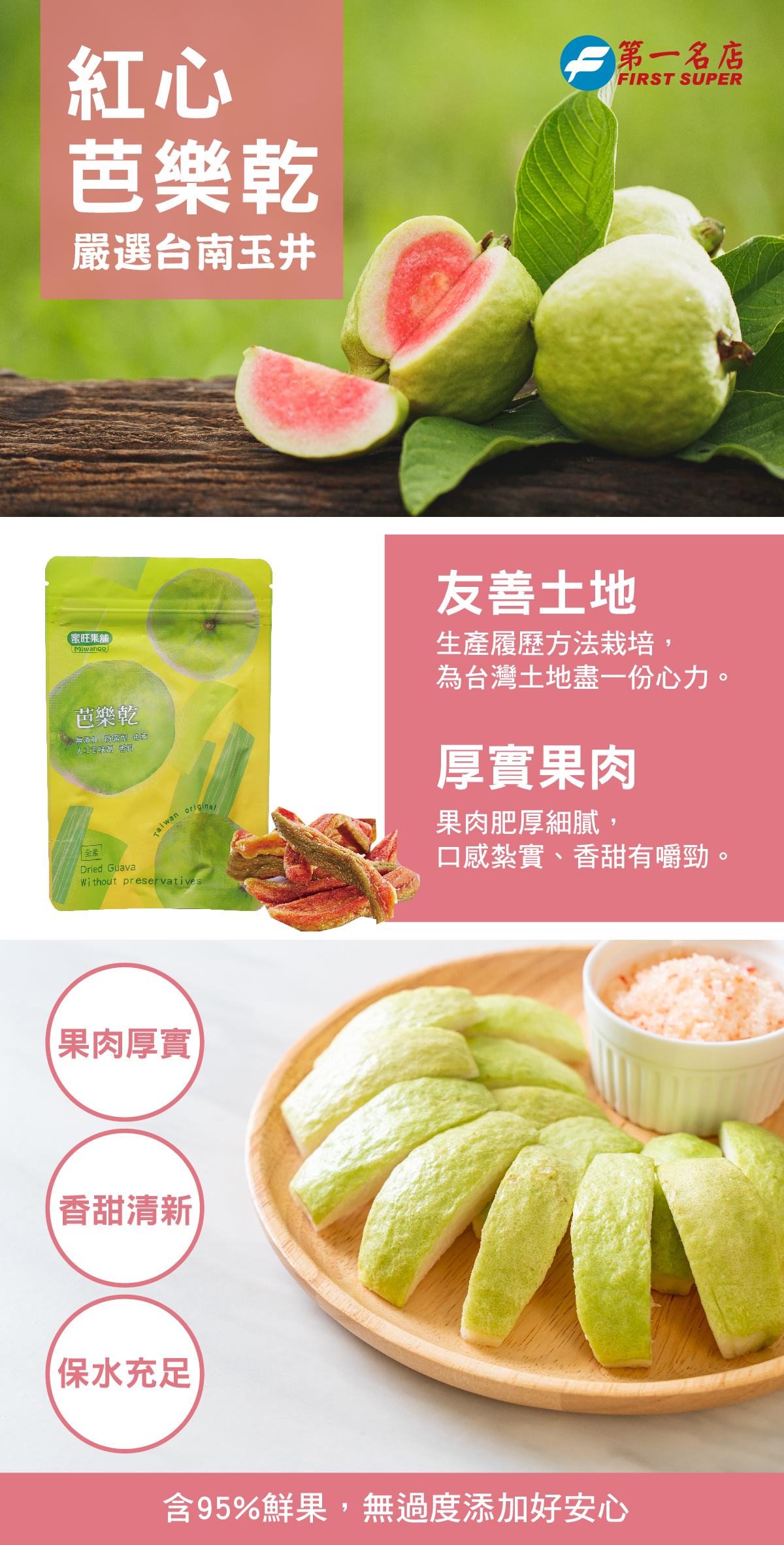 成 分:紅心芭樂、砂糖、食鹽、檸檬酸