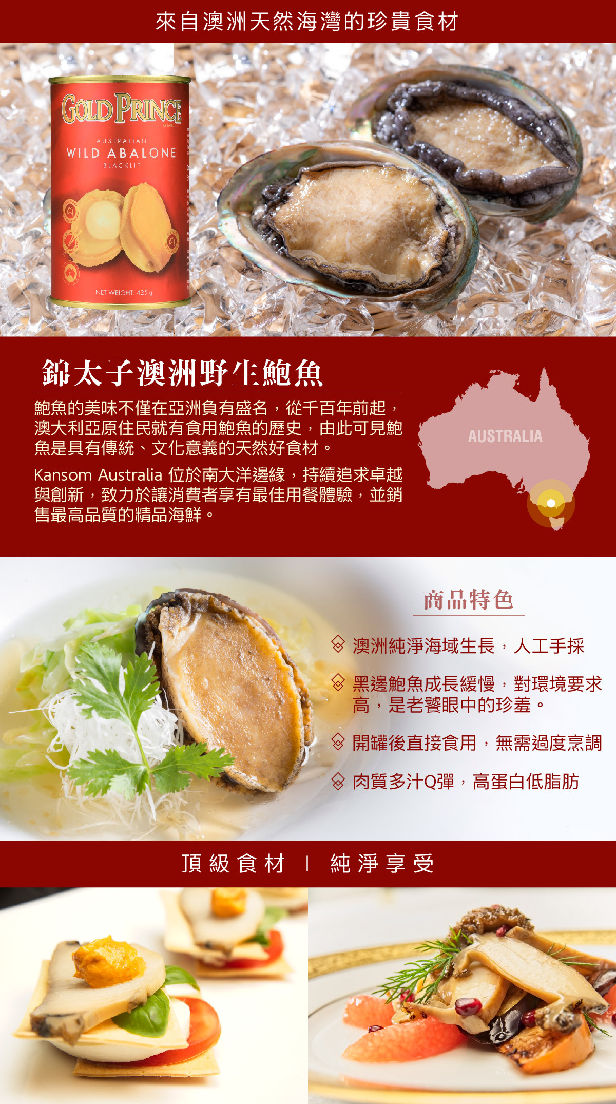 (2)維多利亞純淨海域自然生長,人工手採黑邊鮑魚,品質最優。