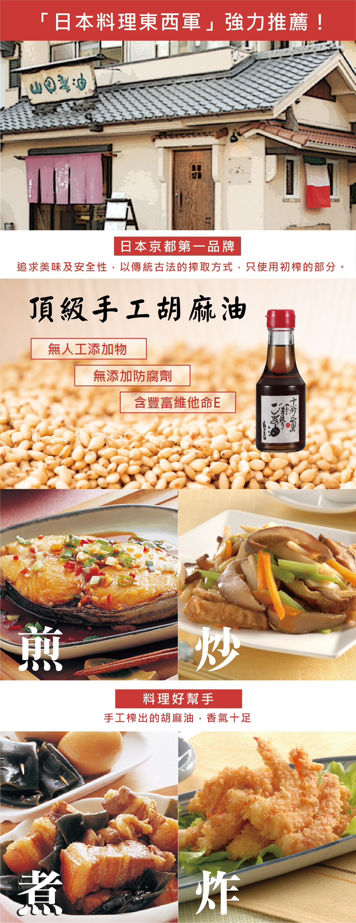 ●精挑頂級芝麻,採用傳統方法第一次壓榨製成