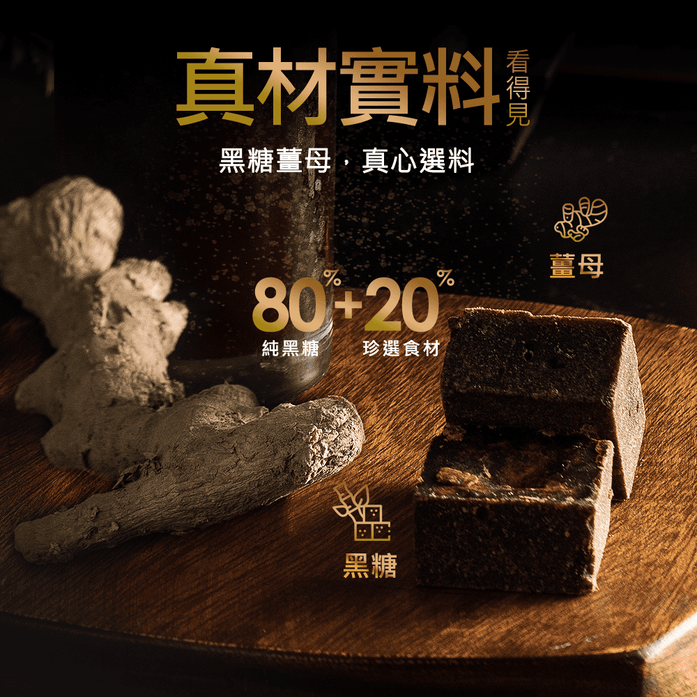 內容物:黑糖、糖蜜、老薑、薑萃取物、(防腐劑)己二烯酸鉀<0.2%