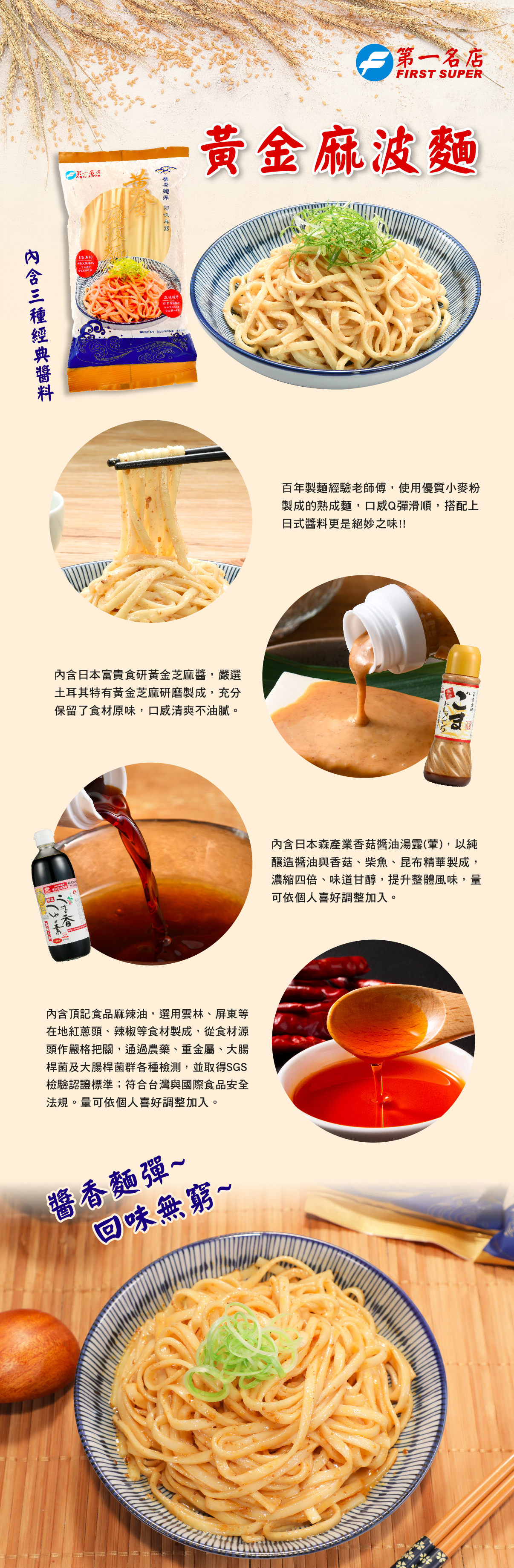 單包容 量:150公克(麵105公克、黃金芝麻醬30公克、森產業香菇醬油湯露10公克、麻辣油5公克)